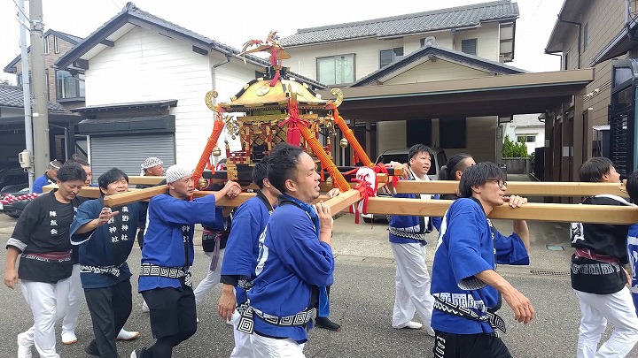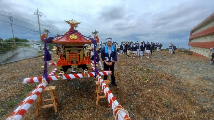 実行委員の発案で雄島小学校校下区の御輿が大集合しました。